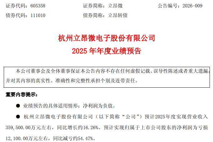 1月21日晚间,立昂微(605358)发布2025年年度业绩预告,公司预计2025年亏损1.21亿元左右。公司虽将迎年度净利两连亏,但同比大幅减亏。