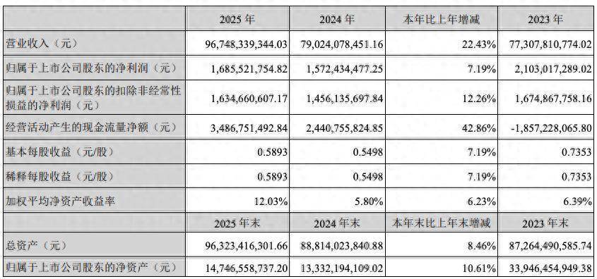 4月14日晚间,国内ICT巨头紫光股份(SZ000938)披露2025年年报,公司2025年实现营收约967.48亿元,同比增长22.43%;归属于上市公司股东的净利润16.86亿元,同比增长7.19%;实现扣非归母净利润约16.35亿元,同比增长12.26%。公司拟以28.6亿股为基数,向全体股东每10股派发现金红利0.65元(含税),不送红股,不以公积金转增股本。
