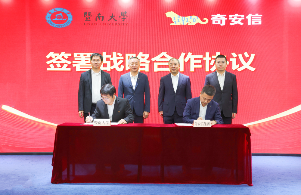 12月20日低息配资炒股网,奇安信集团与暨南大学在石牌校区举行战略合作协议签约仪式。双方将围绕人才培养、科研转化、校园安全防护等领域开展深度合作,共同打造"产学研用"深度融合的网络安全创新生态。