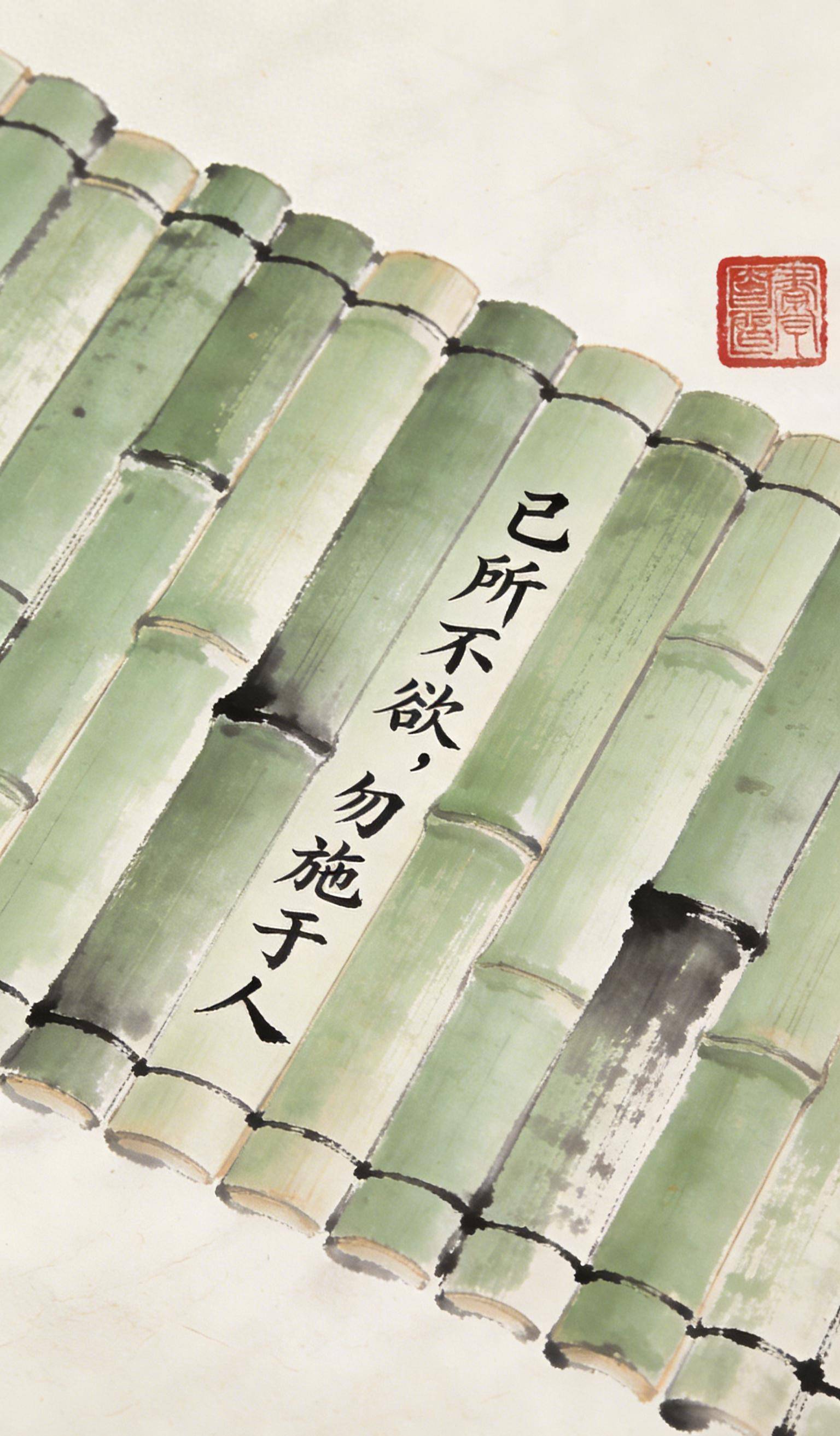 “己所不欲,勿施于人”,听着老套,其实是最朴素的温柔。就像这竹简,一根一根串起来,不是为了压人,是为了撑住自己的底线。墨色浓淡间,藏的不是学问,是做人的分寸 —— 你不想被人敷衍,就别敷衍别人;你不想被人算计,就别算计别人。
