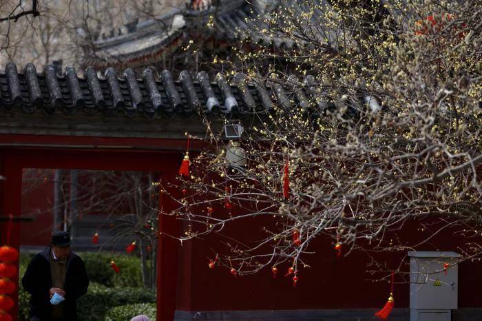 2月22日早春时节,京城万寿寺内蜡梅迎来最佳观赏期,金黄剔透的花朵缀满枝头,清雅梅香萦绕古寺院落,为冬日的古都增添一抹温婉诗意。